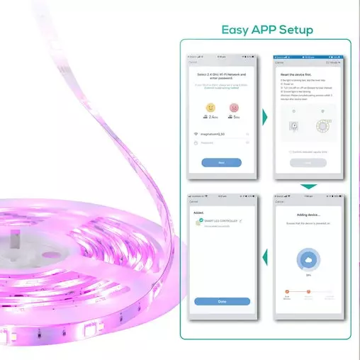 Download the world-leading and most compatible IOT software. Tuya smart app (Android, iOS), plug in your smart light strip and follow the simple on-screen directions to watch your home light up without the need for a hub.