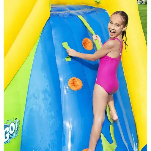 Content: 1 slide, 1 blower (stakes included), 1 repair kit (multiple assorted patches), 1 storage bag,10 bouncer stakes, 1 anchor bag,1 water spray hose assembly