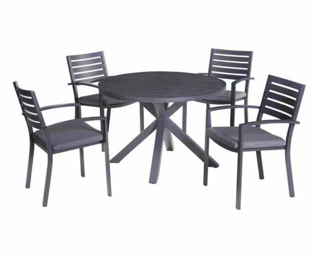Impress and entertain outdoors with the stylish Jette-Boston dining collection. The Jette dining table range mix perfectly with the slatted aluminium Boston dining chairs. The Jette aluminium slatted tables are powdercoated in gunmetal grey or white and are available in round 2 and 4 seaters, and rectangular 6, 8 and 12 seaters. You can sit down and relax with the 3 year comprehensive warranty.