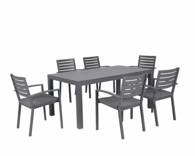 Impress and entertain outdoors with the stylish Jette-Boston dining collection. The Jette dining table range mix perfectly with the slatted aluminium Boston dining chairs. The Jette aluminium slatted tables are powdercoated in gunmetal grey or white and are available in round 2 and 4 seaters, and rectangular 6, 8 and 12 seaters. You can sit down and relax with the 3 year comprehensive warranty.