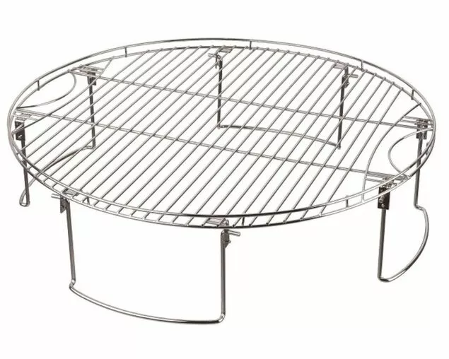 Chrome plated steel cooking grate with folding legs for easy transportation; create your own fire pit BBQ anywhere you go. Holds approx. 50kg of food while cooking