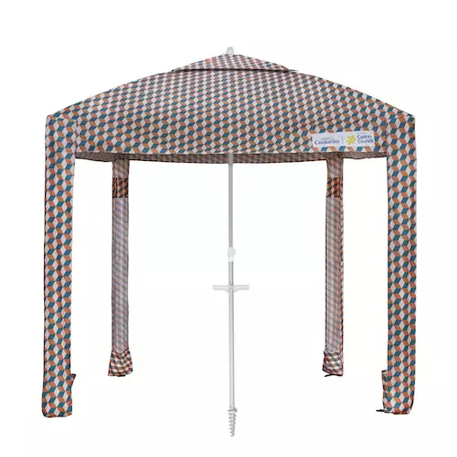The Coolaroo Beach Cabana has a durable powder-coated steel frame and UPF 50+ polyester canopy with sand pockets and a pocket for your phone, keys etc. It also features handles to assist screwing the anchor spike into the sand and is Cancer Council endorsed. The polyester UPF50+ canopy provides sun protection with a compact carry bag for easy storage when not in use.