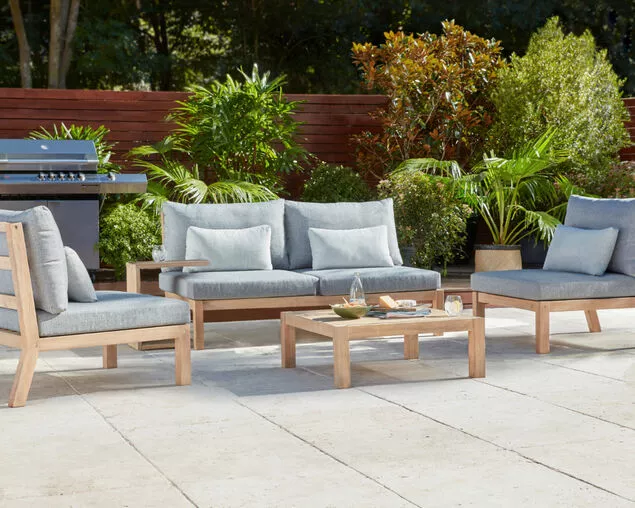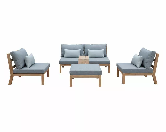 Lounge around in comfort and style with the Cooper Modular Lounge setting. Crafted from sustainably sourced Acacia FSC timber in a lightened teak colour with a premium Olefin back and base cushion in soft grey and contrasting lumbar cushions included. Each module is generous in size and can be bought separately to build up a large lounge or as two or three pieces for a smaller space. The coffee table has a cushion included so it is multi-functional.