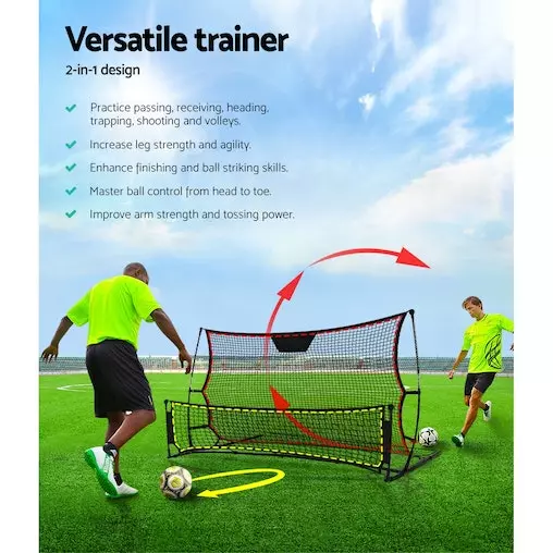 If you love the beautiful game, you will surely love the Everfit Portable Soccer Rebounder Net. Easy to set up, the portable goal comes with a sturdy powder-coated steel frame and a high-density PE net to practice your soccer skills. Passing, receiving, heading, trapping, volleys and shootings are all intermixed with reactive skills on dealing with unpredictable ball rebounds. From goalkeeper to full back to forward, every soccer position can be rigorously trained and tested in real game-like conditions. The frame itself is made with 40% more steel for extra durability. Plus, the four ground stakes ensure that the entire ensemble stays firmly in place with robust play. Not least, you can carry the goal easily to any location for a game with the bonus carry bag.