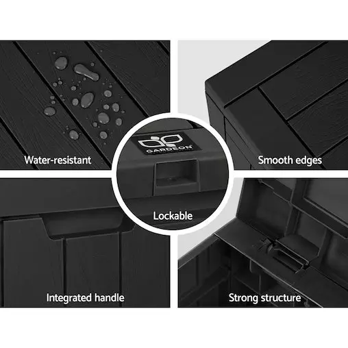 Looking for extra storage for storing your garden essentials and your expensive tools? We have got you covered. Gardeon brings you an excellently designed outdoor storage box. Use it as a bench, storage box, or table. Our outdoor storage box is built from eco-friendly polypropylene material, featuring a gorgeous wood grain look and feel that you will love. It is spacious and has a great weight holding capacity. You can even lock it for security and safety purposes, meaning your tools and equipment, garden essentials, and other loose stuff will be safe and secured. Our storage box can be stored outdoors and indoors. It offers good weather resistance and will not rust. Furthermore, the integrated handle makes it easy to carry, and the hydraulic hinge prevents any accidental closures, making it child-friendly. Why wait? Bring home this fabulous Gardeon outdoor storage box today!