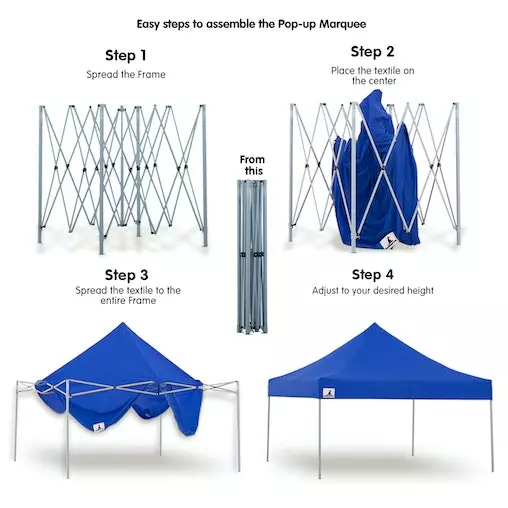 Our strong triangulated frame system means this marquee comprises only 2 main parts. The frame is one complete assembly which expands to 3x3m and the roof is fitted over the frame as it unfolds, giving you instant cover from rain or sun! You can then set the height of the legs and fit the walls if required. When you’re done you can just as easily fold the frame and roof away into the carry bag we provide, ready for transport or storage. The entire setup process will take 2 or 3 people just a few minutes!