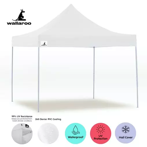 These folding marquees are the ideal solution to protect your next outdoor bbq event or party from that ‘chance of rain’, or as a large, lovely sunshade retreat for guests. Have one on standby for your next home or office event.