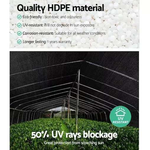 Made from mono-tape UV-stabilised HPDE knitted fabric for strength and shade coverage, our Shade Cloth resists tears, fraying and un-ravelling and provides up to 50% shade block. This means that it is suitable for plants such as orchids, ferns and large olive trees or used as fencing or barriers for buildings and farm structures.