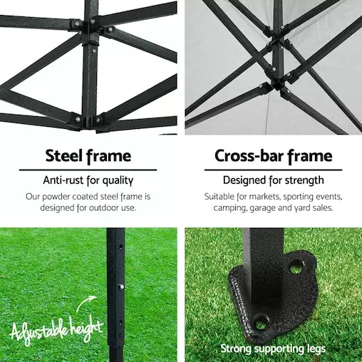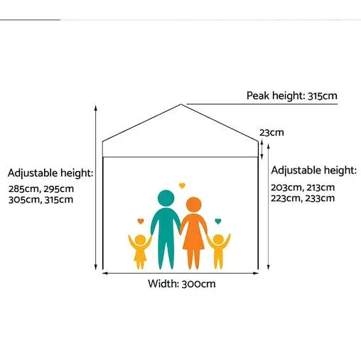 The INSTAHUT gazebo has 4 adjustable height levels to suit different height needs. It is ideal for markets, sporting events, camping, garage and yard sales, school events, trade shows and many more.