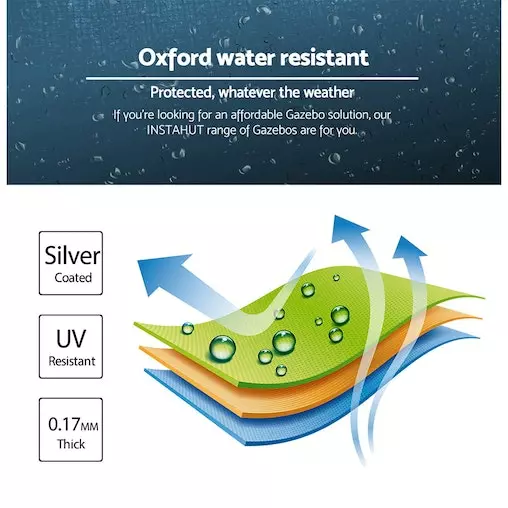 With a wide roof coverage of 300cm by 600cm, the exceptional cover is made of durable silver-coated Oxford fabric that’s both UV and water resistant. No more worries about being too hot or too wet, you can get your event going with total peace of mind from the elements. Giving you ample dry cover from rain and adequate protection from UV radiation.