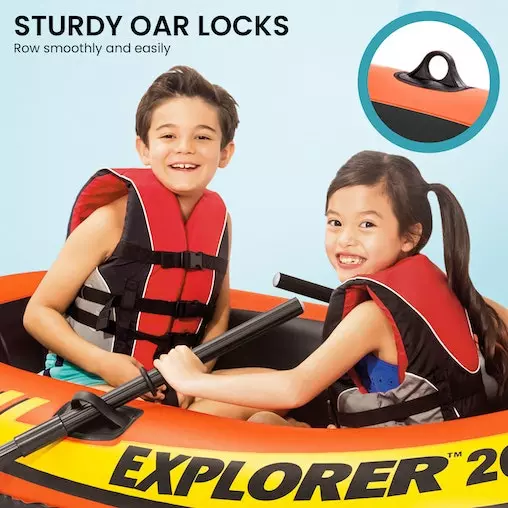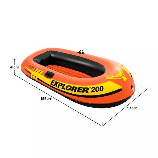 Enjoy a fun day out on the lake or pool with the Intex Explorer 200 Boat Set! It comes with everything you need for a day of rowing fun, including two oars and a mini hand pump. Made with strong 14-gauge vinyl in a bright orange shade, this boat can support up to 95kg or one adult and child.