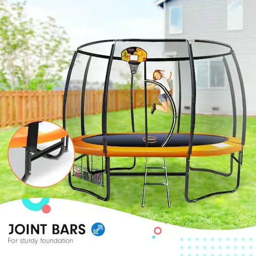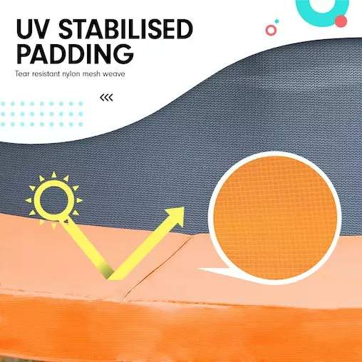 The padding cover of the trampoline is UV stabilised and has embedded nylon mesh for re-enforcement.