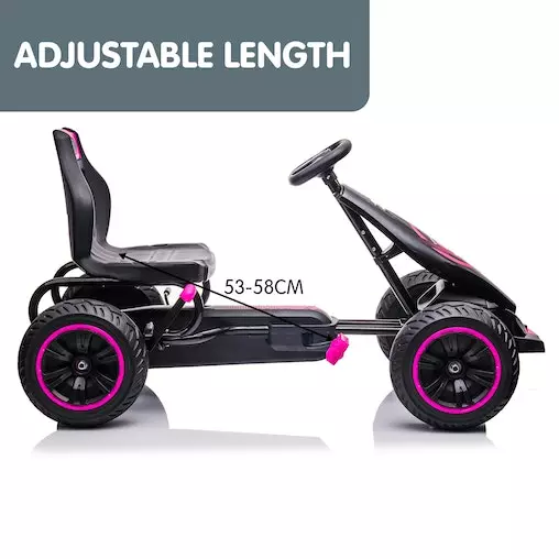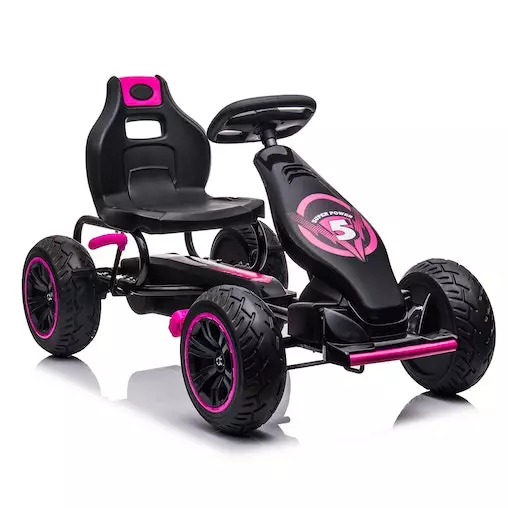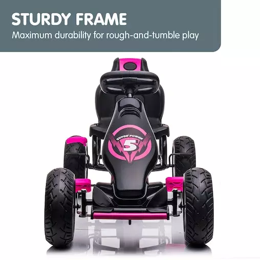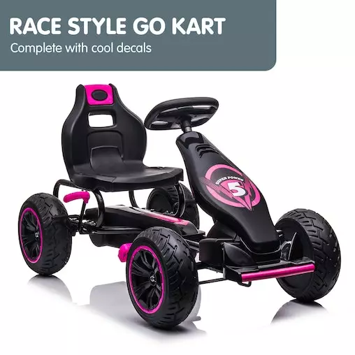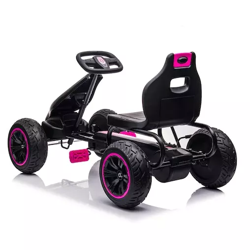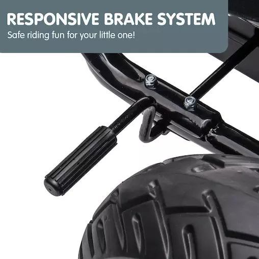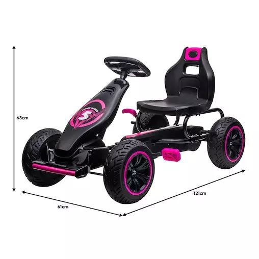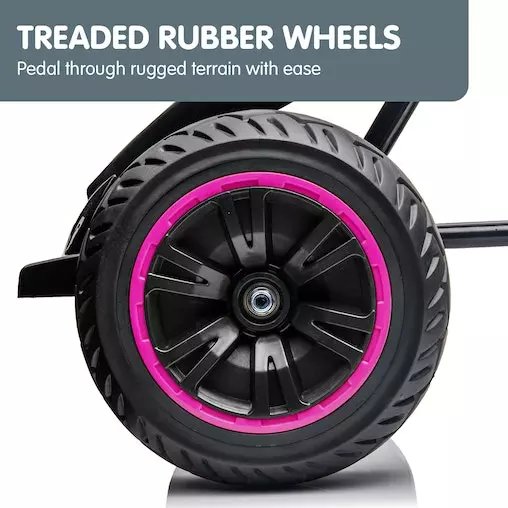 With treaded rubber tyres, a responsive brake system and a directional steering wheel, this go-kart is made with absolute safety in mind. It also has a push/pedal system to switch to manual pushing if needed. Whether your child likes to race or simply cruise the streets with friends, this bag of fun on four wheels will provide hours of go-karting fun!