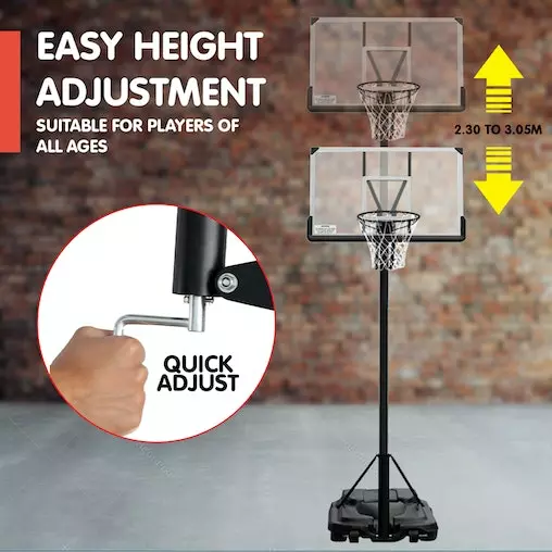 - Height adjustable: 2.3m to 3.05m (NBA regulation height)
