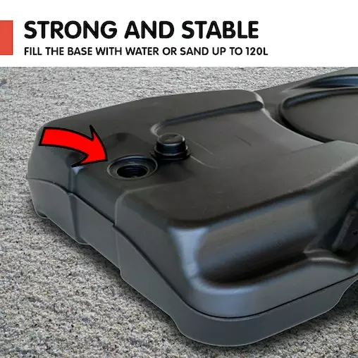 - 120L base can be filled with water or sand for stability