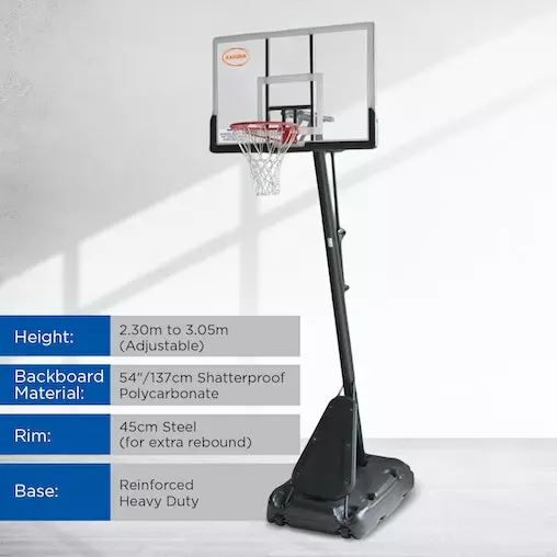 Transform your yard into a basketball arena with the Kahuna Portable Basketball Hoop. It’s easy to set up in any driveway or yard, so you can practise your shooting skills whenever you want.