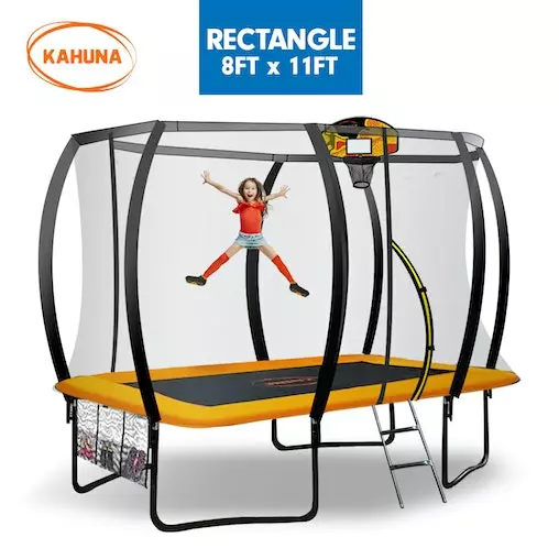 This trampoline features a spacious rectangular sized jumping surface and U-shaped linked legs for optimal support. Great for safe, family fun our trampolines are a great way to get kids off those electronic devices and outside to burn off some of that energy.