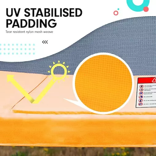 The padding cover of the trampoline is UV stabilised and has embedded nylon mesh, ensuring the padding will last under the harsh Australian sun.