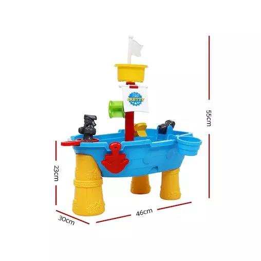 Your children will simply love our Keezi Sand and Water Table! With lots of individual pieces and many moving parts, the sand and water table takes your children into a world of marines, sand, sea and everything else in between. Suitable for children three years and older, the sand and water table is designed and made in accordance with EN71 Safety of Toys certification standards. That means it is completely safe for your children with total peace of mind. Not least, the toy is also made of non-toxic and eco-friendly materials. Set it up in the backyard or bring it to the beach, the sand and water table’s three-legged design ensures the assembly stays firm and steady on both sand and water despite its light weight. Your children will have a whale of a time playing with the waterwheel, rotating propeller, rainy cloud and more as he or she takes on the role of the captain of the ship. Neatly packaged in a colourful box, the sand and water table is the perfect gift for the season or any birthday event. Set sail with one today!
