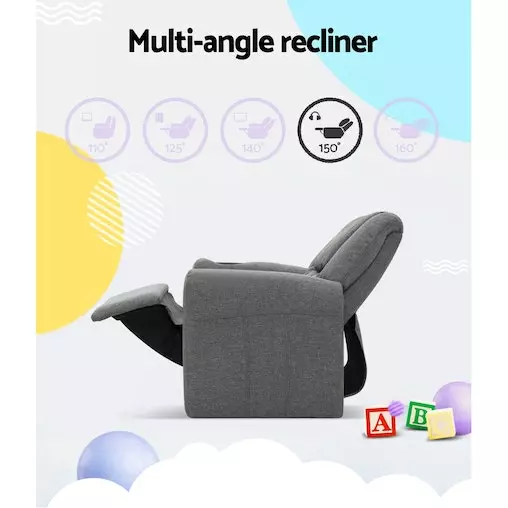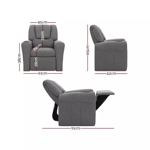 Made of Linen Fabric and upholstered with 9cm of plush cushioning, this Kids Recliner offers total luxury for your child to sit back and relax, read, listen to music, watch TV or play games on mobile devices comfortably. The wide armrests provides for great arm support while the sturdy construction makes it very child-safe and durable. And with the built-in cup holder, the Recliner is ever ready to have your childs favourite drink at close hand.