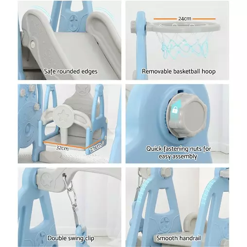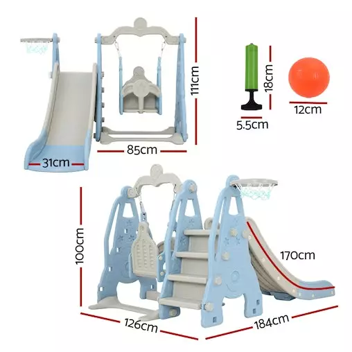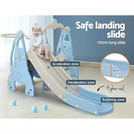 Keezi Kids Slide 170cm Extra Long Swing Basketball Hoop Toddlers PlaySet Blue