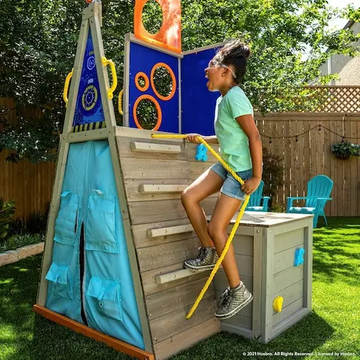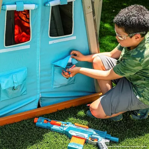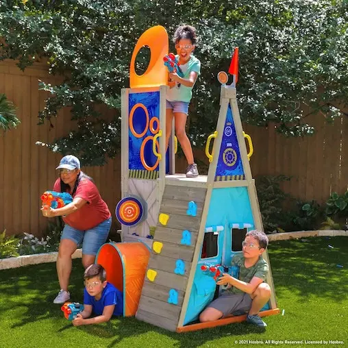 The backyard becomes a riveting adventure any time you scale the Nerf Scout Defense Post by KidKraft.
