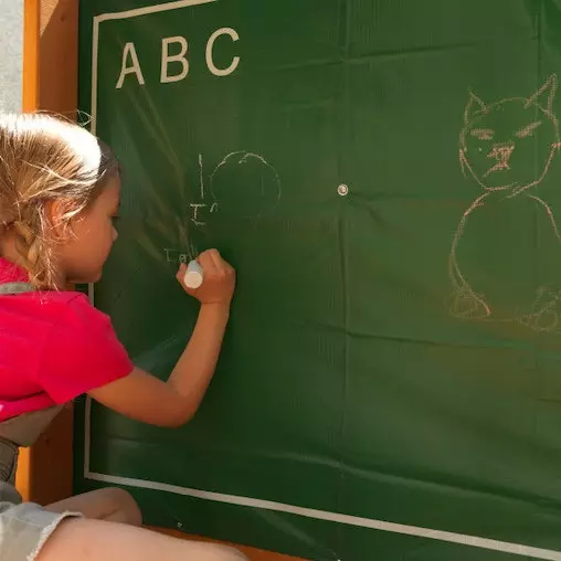 Rock Wall: Fun reaches new heights as kids climb the fun rock wall ladder to get to the upper clubhouse where a giant vinyl chalkboard wall awaits aspiring artists.