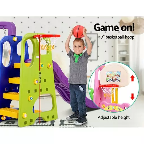 A U-shaped base also ensures better stability even with robust play. The anti-slip steps and wide handles also make it easier for kids to walk and hold onto the equipment without slipping or falling over. The play centre comes with two bonus basketballs, some stickers and a pump. Installation is totally hassle-free with no tools needed.