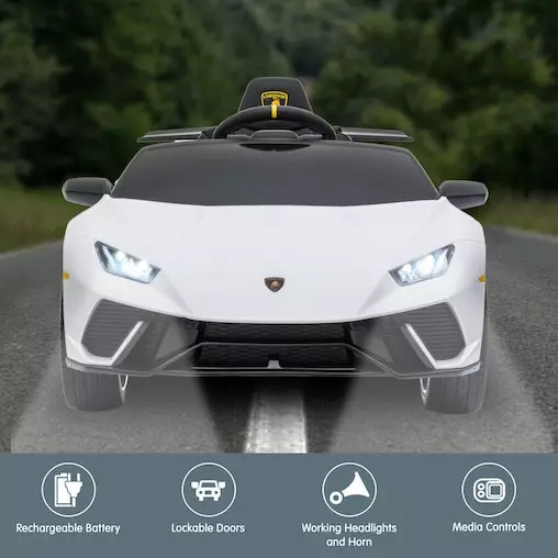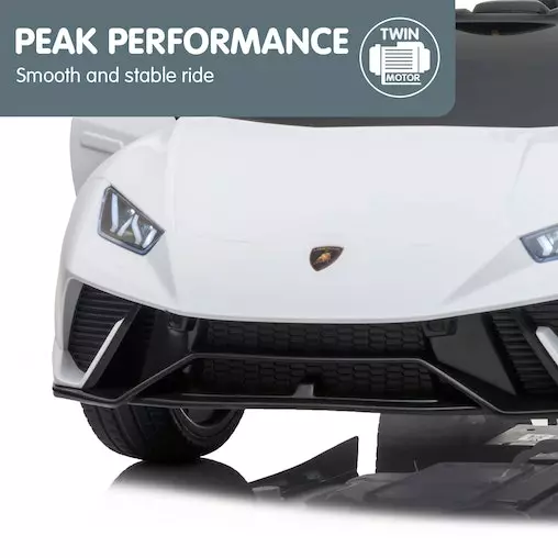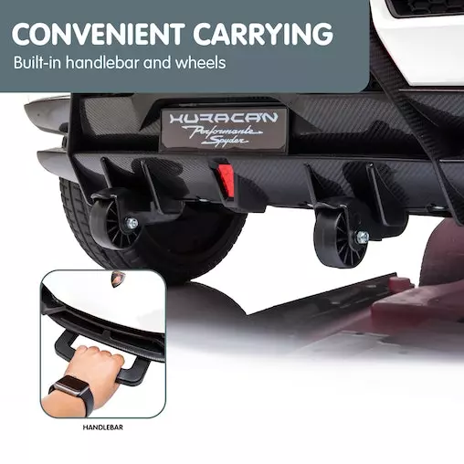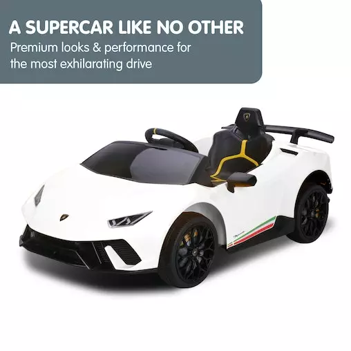 Introducing the Lamborghini Performante Ride On Car – the most awesome gift for little racecar drivers. This officially licensed replica boasts the luxurious silhouette and cool detailing of its full-size counterpart, down to the logos and wheels!