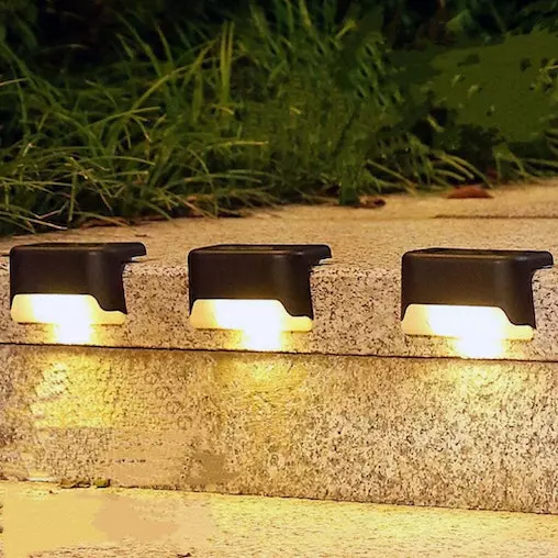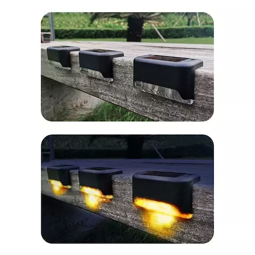 These solar deck lights are solar powered, and wire-free. Each waterproof lamp can be screwed down or secured via adhesive tape, both options included in the set. At dusk, these lights will automatically offer warm white LED lighting during outdoor evening entertainment.