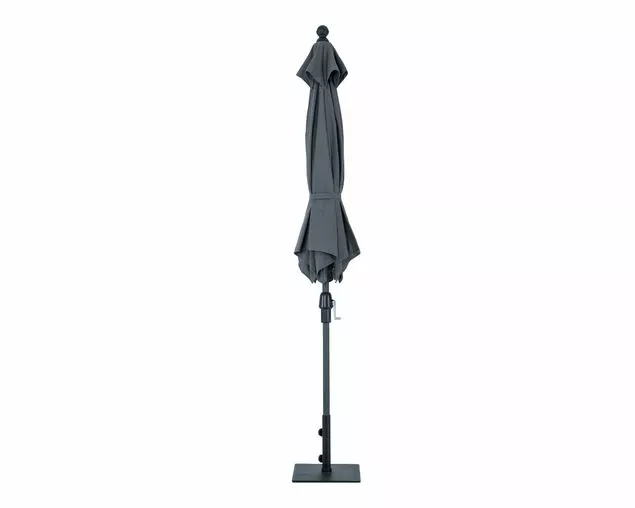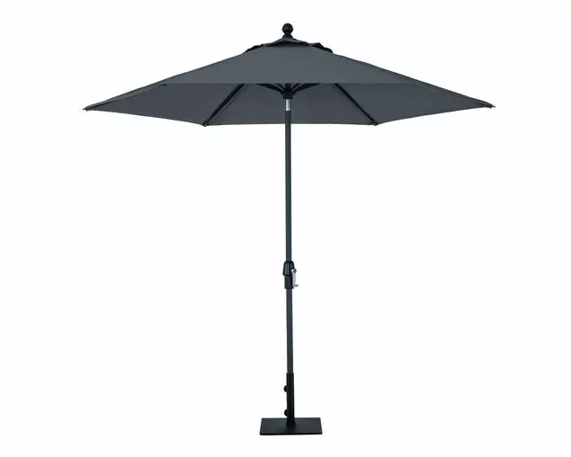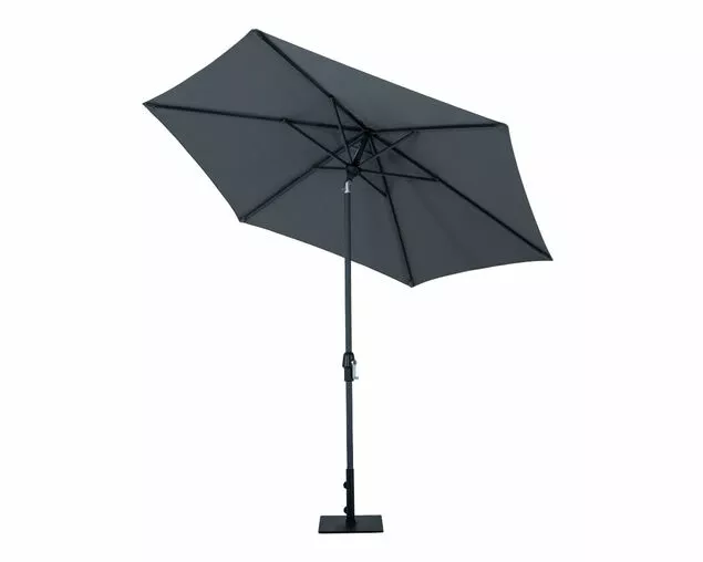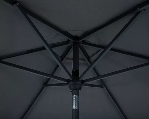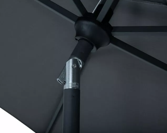 - Hexagonal aluminium crank tilt market umbrella with 200g Olefin charcoal canopy.