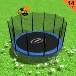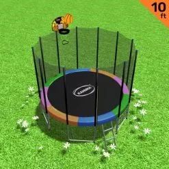 Kahuna Blizzard 14ft Trampoline With Basketball Set – Rainbow