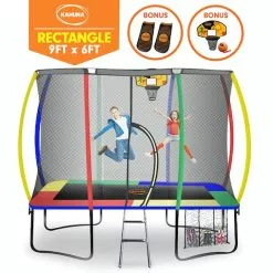 Kahuna Trampoline 6ft X 9ft Rectangular Outdoor Rainbow Basketball Set