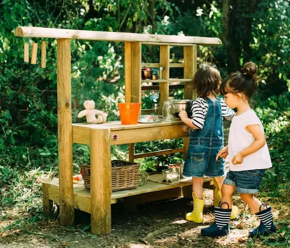 The mud pie kitchen is the perfect environment for sensory play all year round. Check out other STEM play in our Discovery range with the Paint & Create Easel and Woodland Treehouse