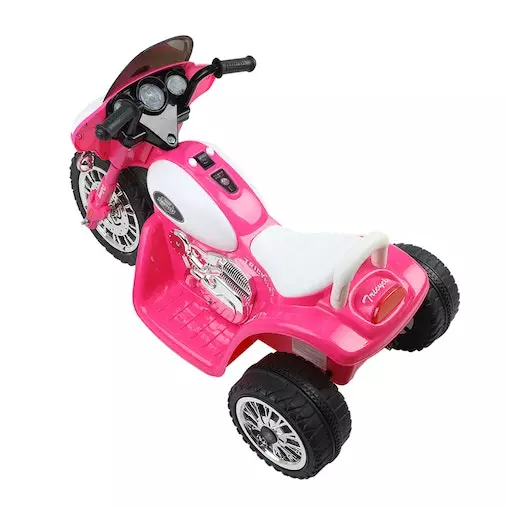 Built as a near replica on a triple wheel platform, this Softail inspired highway patrol version Ride On Motorbike features a solid fully sealed construction for strength and durability. The details are meticulous with close attention given to the rigid low-riding chassis, the elliptical fuel tank, the springer front forks and the saddle seat. The stunning chrome-look wheels also complement the overall look for one very mean machine.