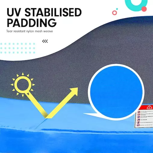 The padding cover of the trampoline is UV stabilized and has embedded nylon mesh, ensuring the padding will last for years under the harsh Australian sun.