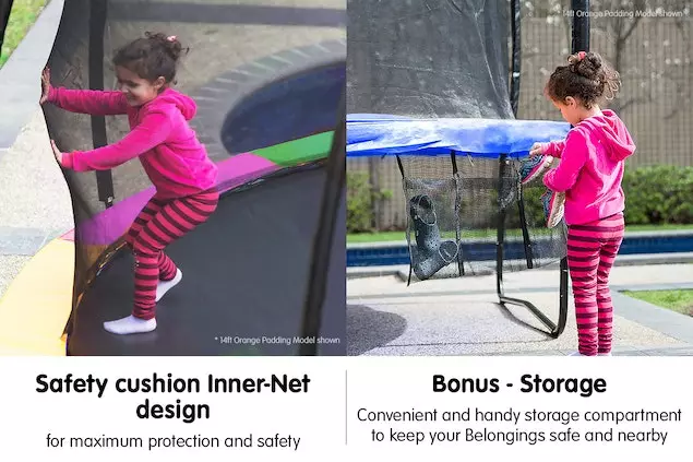Featuring an inner safety net around the mat, separating the jumping area from the padded springs, this trampoline gives children the ultimate safety and great peace of mind for you.