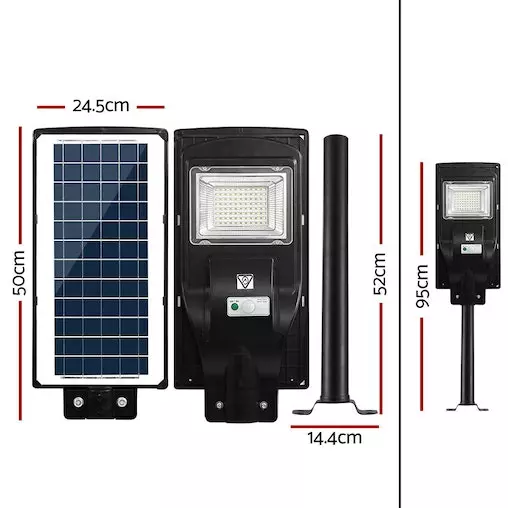 Constructed with a durable ABS plastic body and thick cover, the streetlight comes with an IP67 water-resistant rating, and lightning and snow protection to promise longlasting use in all weather conditions. There is even an aqueduct to let rainwater out so that it does not clog up and damage the internals. Not least, it can certainly provide brilliant security for your home or business any time of the day or night. Your purchase will also include all the necessary installation accessories and a 50cm mounting pole (standing pole not included). So do not be kept in the dark anymore. See the light with our solar streetlight.