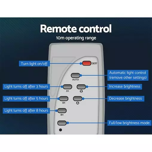With its larger solar panel and powerful LED lights, our Solar Streetlight shines brighter than most with even faster battery charging. It lights large areas using little power, thanks to the reflector which allows the LEDs to appear six times brighter and the fully automatic and intelligent light control system. The light sensor works to automatically charge the streetlight during the day and light it up at night, while the radar motion sensor turns the light up to full brightness when movement is detected and down to dim light at other times. And with the included easy-to-use remote control, you can set the mode to auto or adjust the timer and brightness to suit your requirements.