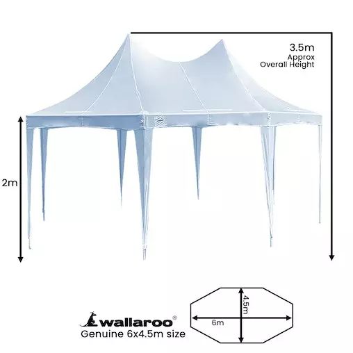 Looking for a classic, multi-configuration pavilion to suit all occasions? The Wallaroo Wedding Gazebo is a perfect choice! This beautiful marquee is a great space to hold any wedding or event. Measuring 6×4.5m, it can hold up to 30 people during your outdoor or garden event.