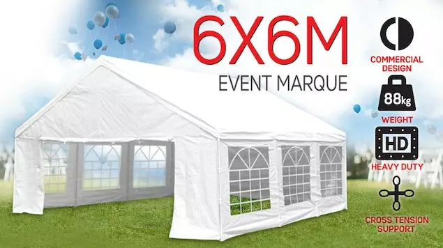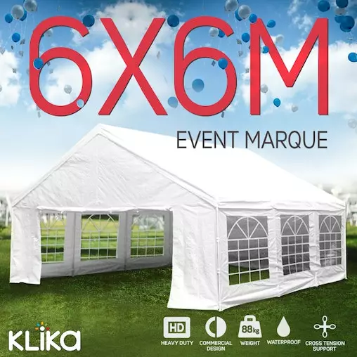 This multi-configuration pavilion suits all occasions. Each side can be quickly fitted or just leave some off for an open design. The end wall has a zip-up door with a 1.8m clearance which you can tie open or leave closed.