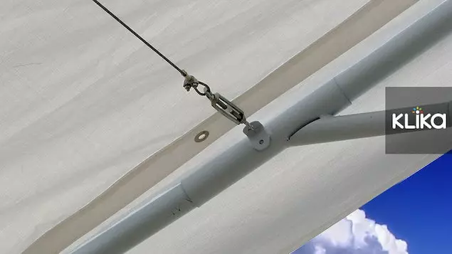 Due to the size of this item it is not possible to determine the type of fixing that may be required in all circumstances and uses. It is important for the user to determine how and where the item is used and to be aware that the structure needs to be adequately secured to prevent damage to the structure and/or injury to people due to wind. In some circumstances (eg: wind-sheltered courtyards) it may be adequate to use sandbags and light guy ropes to secure the item. The user must keep in mind that this item has a large surface area and may need to be guyed down to other fixed structures, heavy sandbags, or a combination of both to prevent damage from wind. The adequate measures required to secure the structure under the circumstances of its use are left to the user to decide.