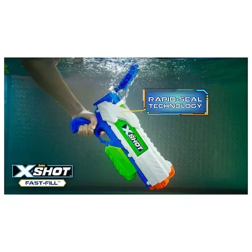 X-SHOT Fast-Fill is the fastest filling water blaster ever created. The Fast-Fill allows you to refill in 1 second and get back to the water blasting action long before your opponents. Just dunk, fill and close with rapid sealing technology. It shoots up to 30ft/10m and you can fill it anywhere. Because a Fast-Fill is everything. Up Your Game!